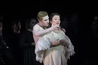 Bottines militaires, collants troués, vêtue d’une parka kaki par dessus une espèce de jupon blanc, Barbara Haveman offre dès ses premières notes une touchante incarnation d’Elsa. Dans un chant très pur, elle va magnifiquement illustrer l’évolution du personnage, de jeune princesse timide en femme forte et déterminée